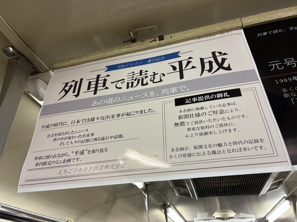 3両全ての中吊りが”平成時代”に彩られています。