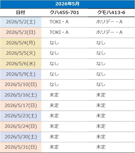 ■2026年4月~6月の運行日